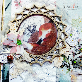 I decorated my box by layering of patterned paper, various paper embellishments and elements, SnipArt chipboards, gauze, sisal, wire, pieces of a drinking-straw, enamel dots...